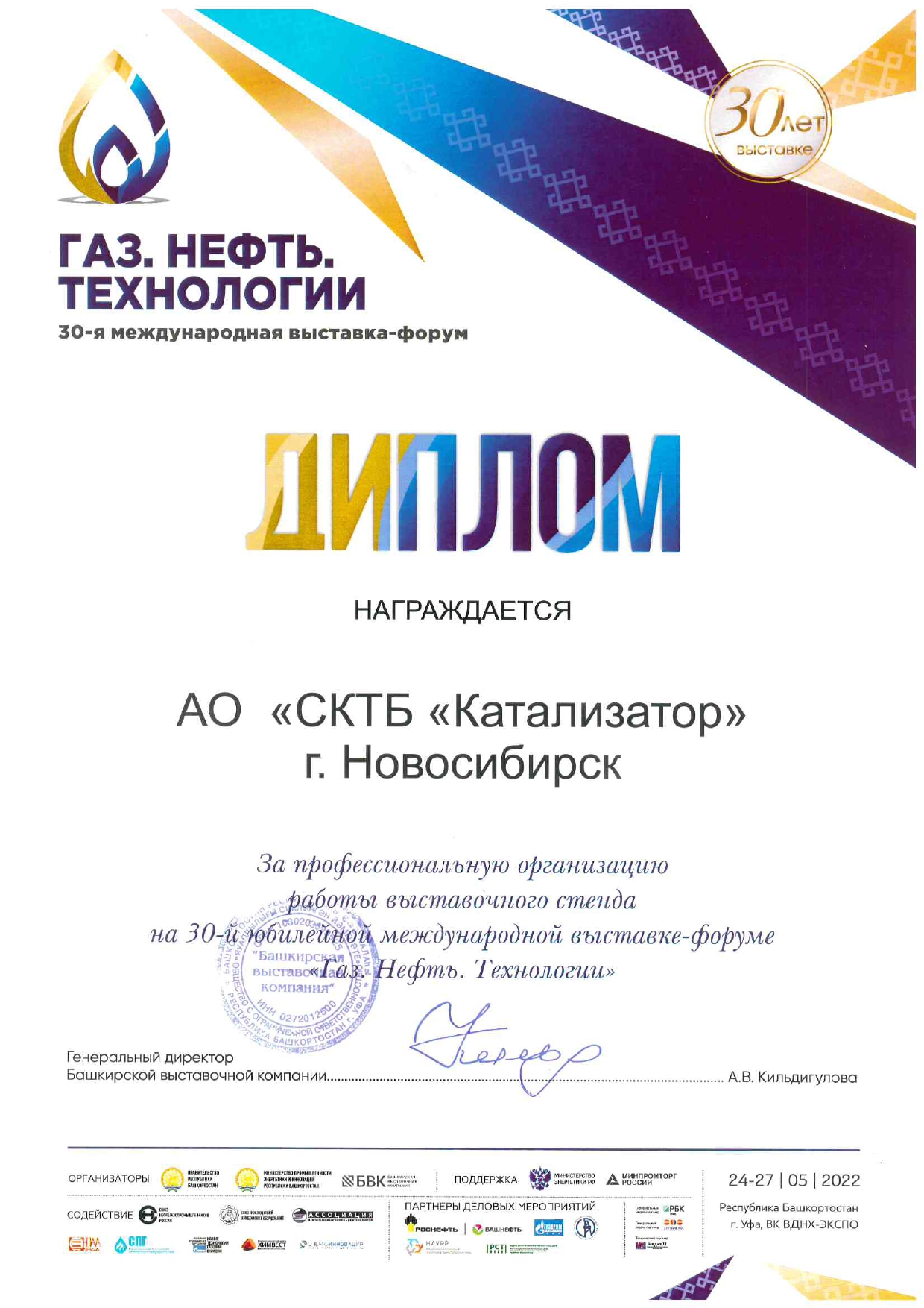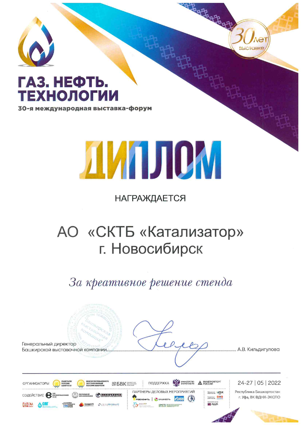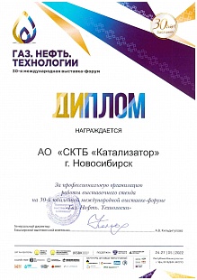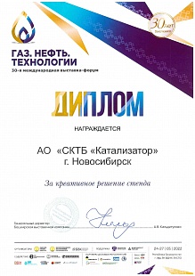 Following the Exhibition results, SKTB Katalizator JSC was awarded diplomas "For the creative solution of the stand" and "For the professional organization of the work of the exhibition stand".